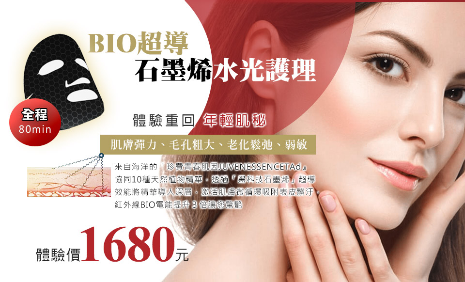 ●BIO活膚美顏儀是「紅外線光與BIO電能』雙效機能的修護型護理,以補充肌膚流失的生物電能及來自海洋的『珍貴青春肌因 JUVENESSENCETMAd」協同10種天然植物精華,透過『黑科技石墨烯』超導效能,能將活膚精華導入深層,激活肌膚微循環,使珍貴青春精華直達深層,提高10倍數活膚效能,淨白水嫩,重現年輕緊緻的水嫩光采。